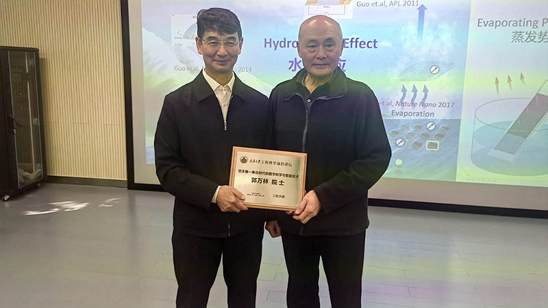 郭万林院士的报告以数字孪生技术的发展为开端,由浅入深地向在场师生介绍了飞机结构疲劳以及智能检测等前沿领域内容。据介绍,智能化技术的发展主要依赖于光纤通信技术以及互联网速度两个核心技术的快速发展。对于光纤通信技术,低损耗光纤通信发展到至今的5G技术速度非常迅速,光纤也不断地向应用化转变,例如光纤应变传感器以及光纤温度传感器等的出现均验证了这点,也正是因为光纤通信的快速发展,互联网速度才能从以前的同轴电缆速度40~565Mbps发展到如今的10Tbps。这两方面技术的不断突破也为空天地海一体化网络--北斗系统以及Starlink系统的建成提供了坚实的基础。随后郭万林院士介绍了数字化孪生技术的发展以及飞机耐久可靠性问题的重要性,并以Spacex公司近年来对可回收式飞行器技术的发展为例,介绍了现有理论是落后于实际应用的,Spacex公司的大量实验是建立在其雄厚的经费基础上,对于可以大大缩减经费支出的数字孪生等可预测设计的技术而言,其技术的可靠性以及成熟度仍需提高,但技术发展成熟后对科学技术的发展也有着巨大影响。郭万林院士也对近年来其团队在飞机结构疲劳断裂方面所做的研究做了简要介绍,并强调了数字科学技术与理论模型结合对于科学技术进步的巨大提升前景。报告最后郭万林院士对未来科技的发展作了展望,并简要介绍了面向未来能源、生态和智能挑战的基本科学问题和水伏学基本概念和研究进展。