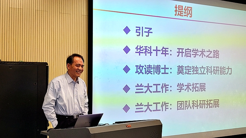 周又和院士的报告主要分为五个部分:固本强基的引子、开启学术之路的华科十年、奠定独立科研能力的攻读博士学位阶段、留在兰大工作的学术拓展和团队科研拓展。他以自身教学科研历程为例,引用了大量珍贵的照片和原始资料,详细阐述了如何树立远大科学志向、如何打好数学力学基础、如何做有趣有用的科学研究等问题,将深奥的科学问题讲解得深入浅出又鞭辟入里。周又和院士强调科研要敢于创新,善于创新,同时鼓励大家要有敢于挑战困难的勇气。