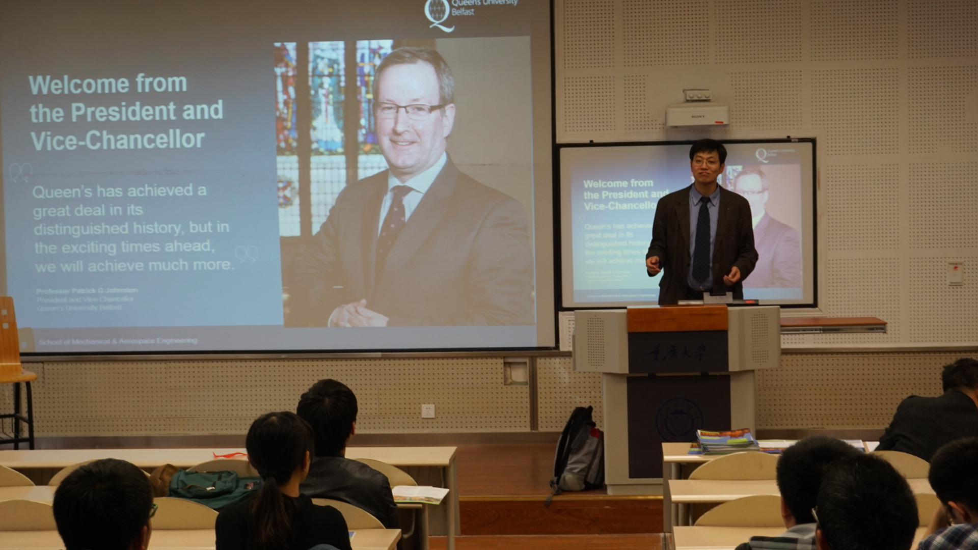 与机械工程学院本科大一大二年级的50多名同学参加了本次宣讲会。宣讲会的主讲人是正在贝尔法斯特大学任教的金严副教授,女王大学副校长Mr. Mark Price也出席了宣讲会。
