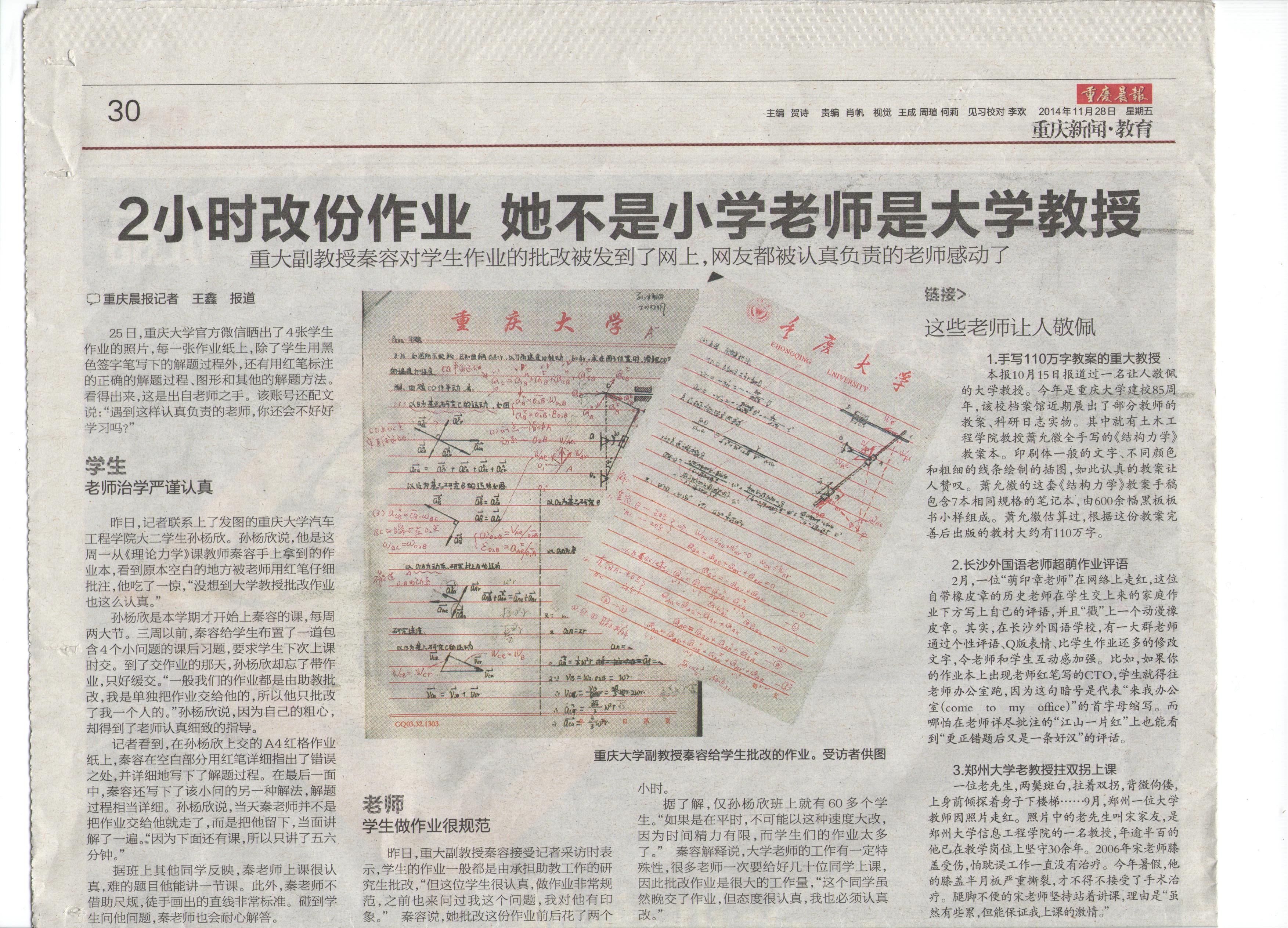 2014年11月28日,重庆晨报一篇名为《2小时改份作业 她不是小学老师是大学教授》的新闻引起广泛关注。新闻配图中两张硕大的作业纸上被红笔密密麻麻写满了解题过程、图形和其他解题方法,批改这份作业的,正是动漫AV
