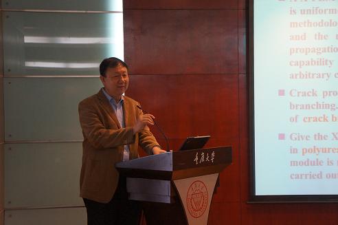 庄茁教授作了题为《基于断裂的扩展有限元(X-FEM)及在连续体壳、裂纹分叉、复合材料的应用》的学术报告。他首先对自己当年在动漫AV