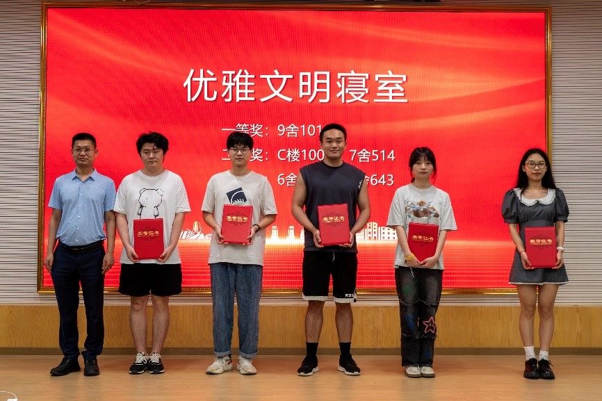 副院长陈立明为9舍1014等“优雅文明寝室”颁奖。