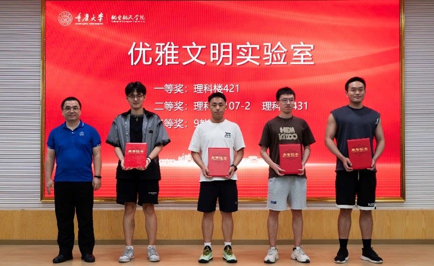 副院长姚建尧为理科楼421实验室等“优雅文明实验室”获奖代表颁奖。