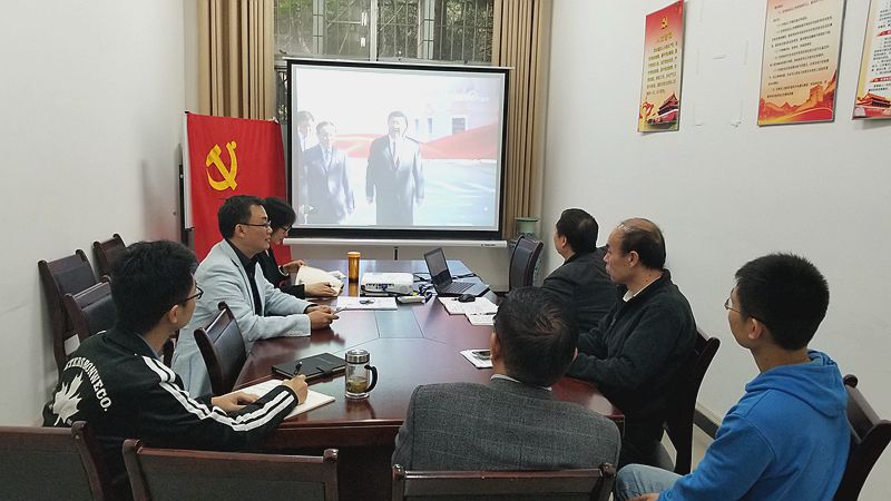 2017年11月6日下午, 动漫AV 党委中心组在理科楼103召开会议,学习贯彻党的十九大精神。学院党委委员、班子成员、各教工支部书记、院办、学办负责人参会,会议由院党委书记万玲主持。