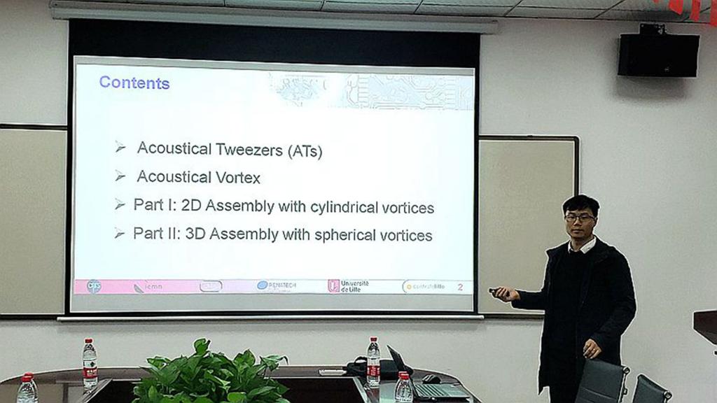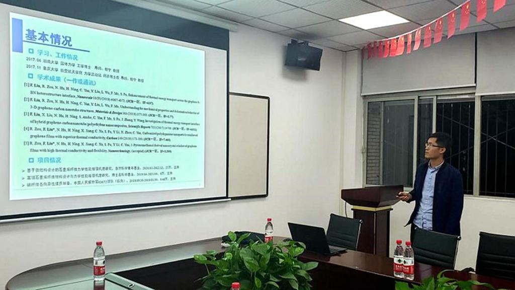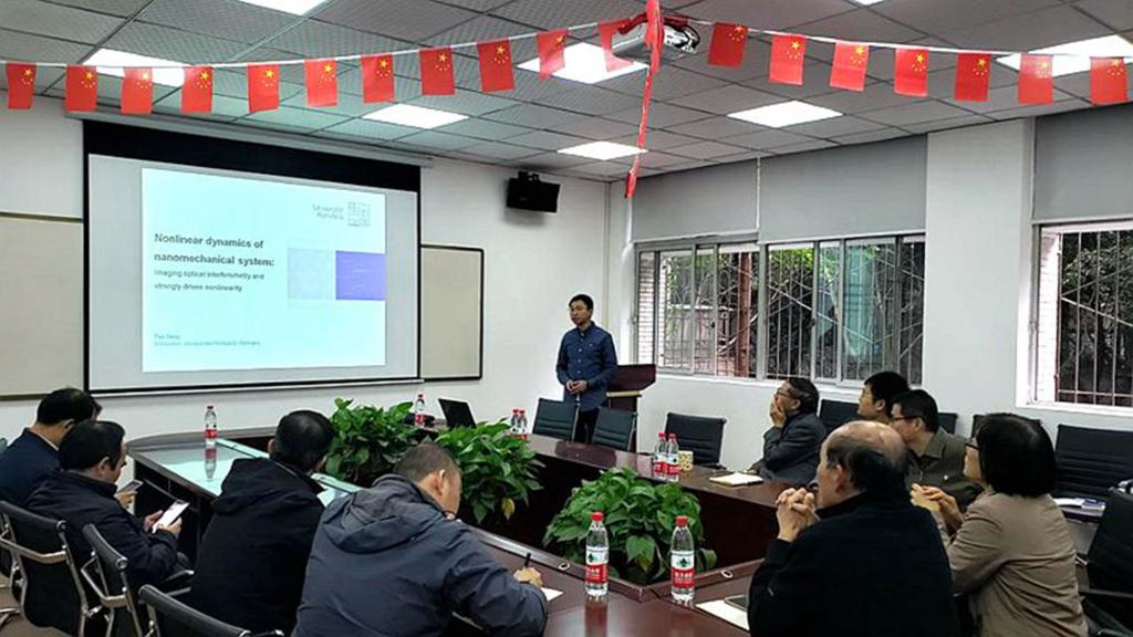 接下来,与会青年学者分别就其研究的前沿领域和热点问题作主题报告。德国康斯坦茨大学杨帆博士介绍了纳米机械系统的非线性动力学——光干涉成像和强烈激发的非线性相关问题;法国国家科学研究中心龚志雄博士就实现粒子操控的声镊技术作了汇报,通过设计和优化声源,在流体介质中辐射出适宜进行微小粒子超控的声漩涡场,进而设计出用于粒子装配的同步声镊;北京航空航天大学王海潮博士围绕航空发动机涡轮叶片冷却问题报告了最新研究进展;南京理工大学周胜兵博士的报告围绕旋转爆震燃烧的新型动力技术作了详细介绍;北京航空航天大学郭方亮博士汇报了多尺度热-力学性能建模分析、湿热老化演变机理以及低膨胀结构优化设计等研究工作;动漫AV 即将出站的师资博士后刘锋博士和付涛博士就在站期间研究相关情况作了汇报和分享。各位青年学者与参会教师热烈交流讨论,现场气氛十分活跃。
