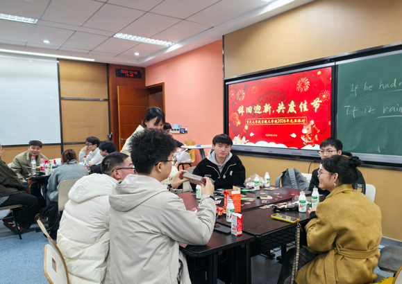“辞旧迎新,共度佳节”研究生跨年联欢会在A校园八教学楼温馨开场。现场精心设置桌游互动区、经典电影放映区及茶话交流角,将趣味性与思想性深度融合,为深耕科研的同学们打造了放松身心、畅叙情谊的专属空间。