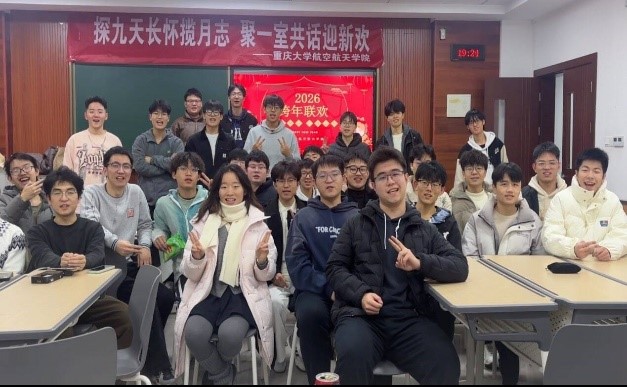 与此同时,本科生跨年联欢会在A校园与虎溪校园同步开展。互动游戏区,同学们在协作闯关与趣味竞技中迅速拉近距离;茶点交流区,大家分享学业生活的趣闻轶事,畅谈空天报国的远大理想,共话新年的美好期许。欢声笑语穿透校园夜空,青春活力点燃逐梦征途,联欢会在真挚的祝福声中圆满收官,为2025年画上句号,更为新一年的奋斗之路积蓄了蓬勃力量。