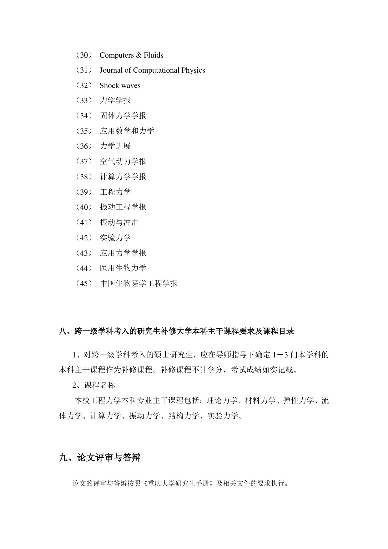 力学博士研究生培养方案