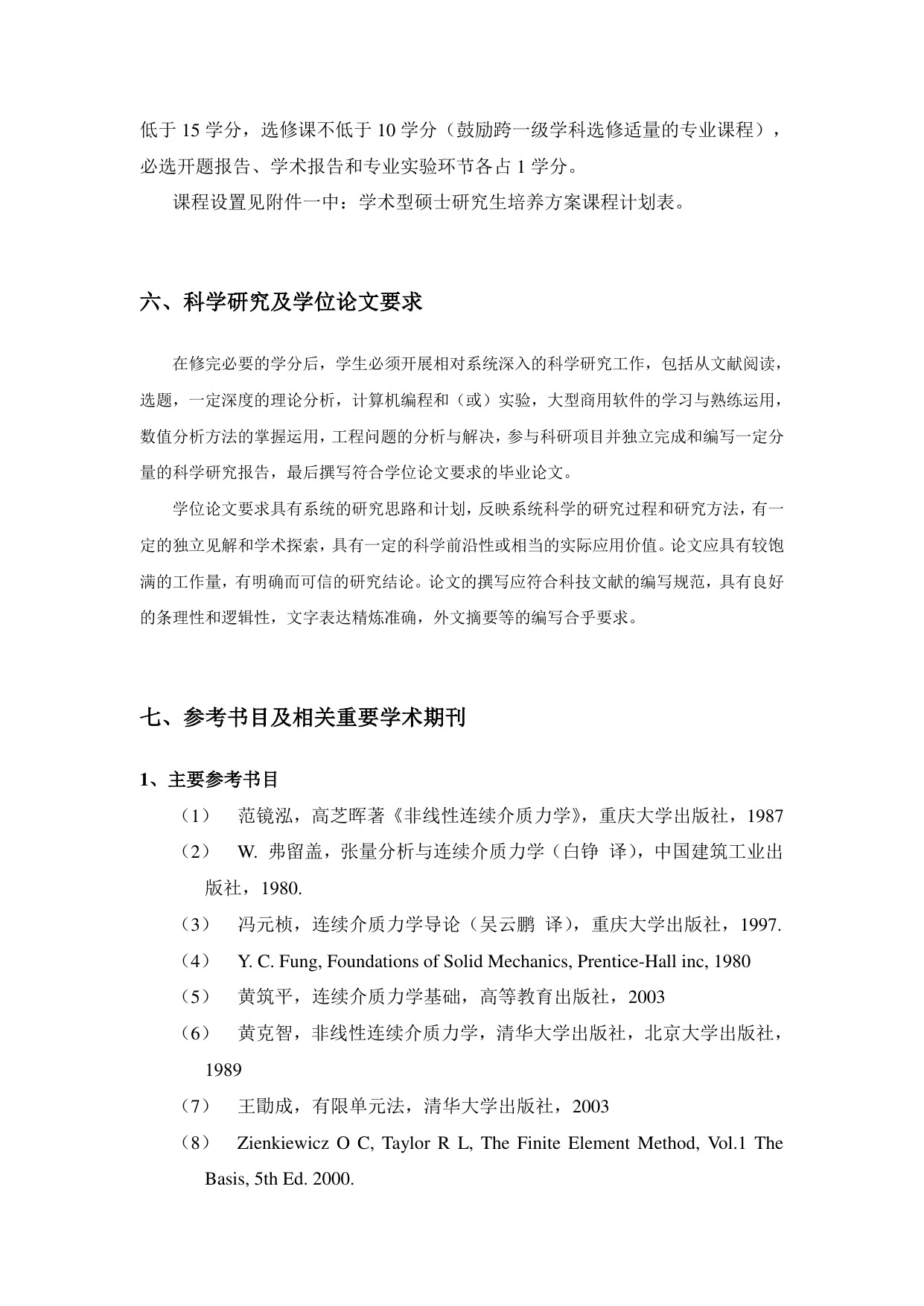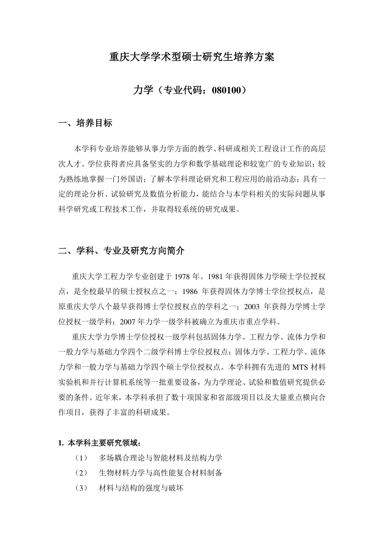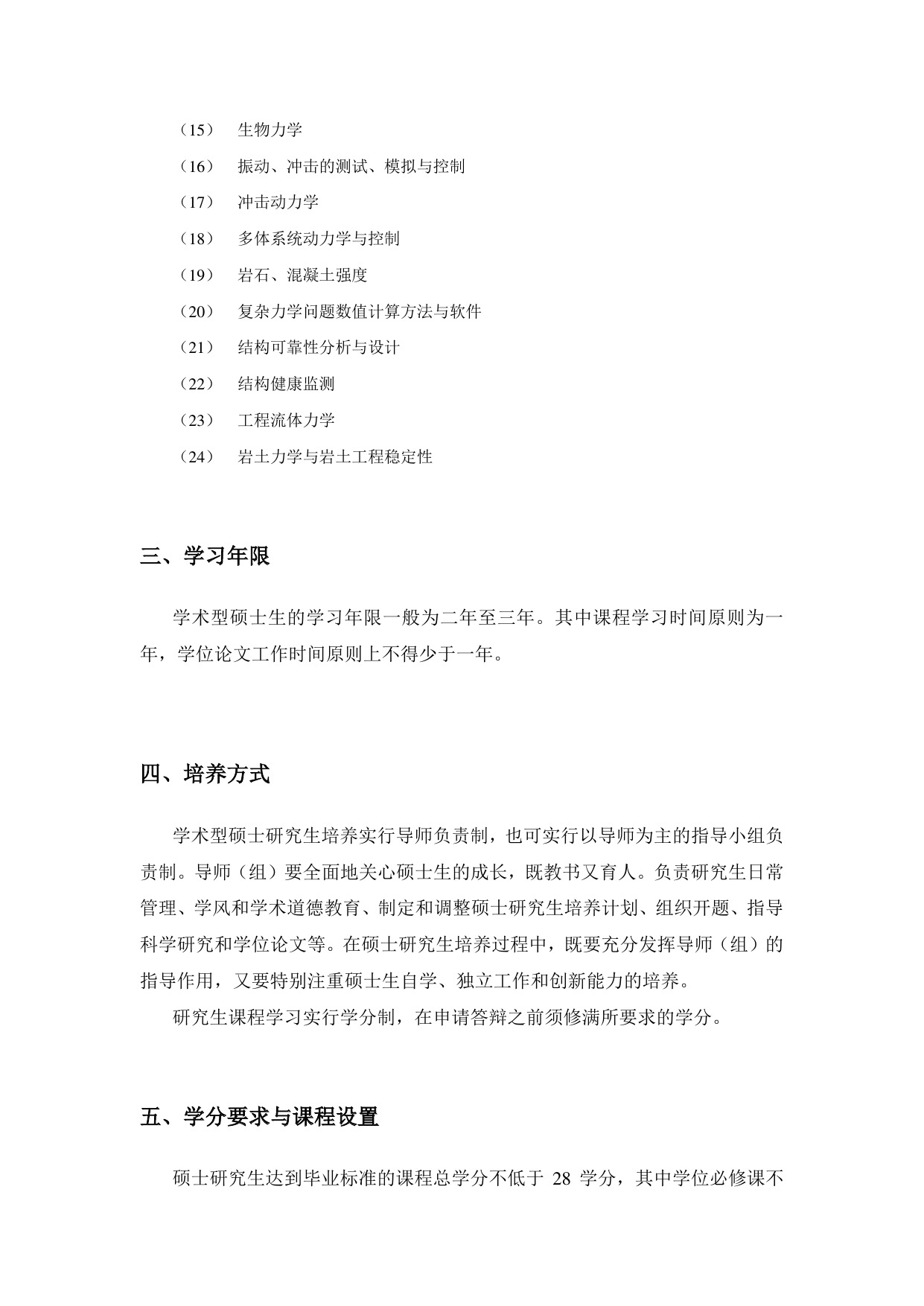 力学学术型硕士研究生培养方案