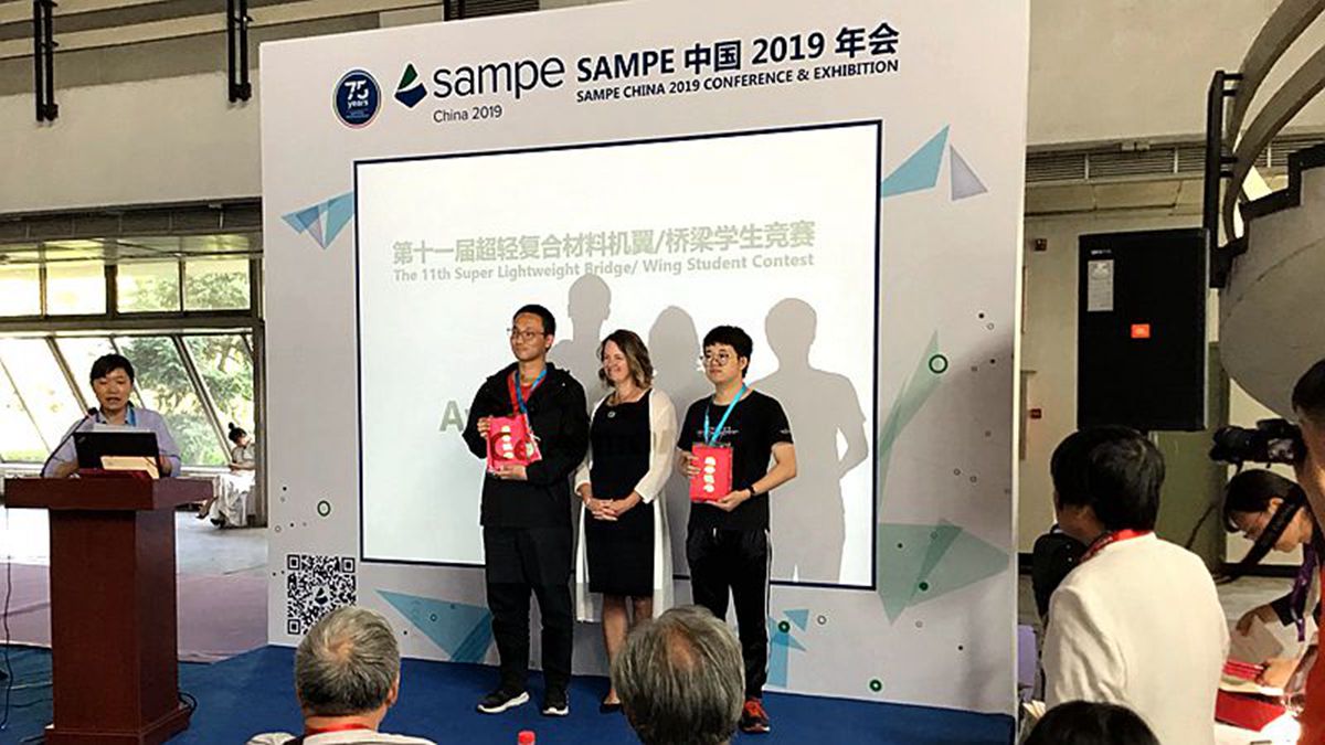 SAMPE(The Society for the Advancement of Material and Process Engineering)是一家以航空航天复合材料研发起家、以先进复合材料为主要关注点的国际性专业学会组织。由中国航空学会、SAMPE中国大陆总会共同主办,美国波音公司赞助支持的第十一届SAMPE超轻复合材料桥梁/机翼学生竞赛于5月6 -8日在北京中国国际展览中心举行。大赛分为机翼预浸料成型、机翼液体成型、碳纤维桥梁和天然纤维桥梁四大类,旨在普及先进复合材料结构设计及制造工艺知识,提升在校学生设计、优化、分析、建模及动手制作复合材料制件的能力,为高校复材相关专业的学生搭建一个施展才华的国际舞台,至今已举办十一届,在国内外业界具有极大的影响力。