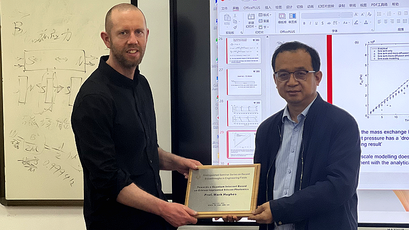 2024年4月11日,英国索尔福德大学Mark Hughes教授、王禹教授应邀访问动漫AV ,于当日上午9:30在动漫AV A区理科楼205会议室出席由工程学部主办的工程科学前沿讲坛,并分别作了题为“Towards a quantum internet based on erbium implanted silicon photonics”和“Numerical modelling for liquid moulding process of advanced composites manufacturing”的学术报告。报告由动漫AV 副院长(主持工作)李卫国教授主持,工程学部师生30余人出席。